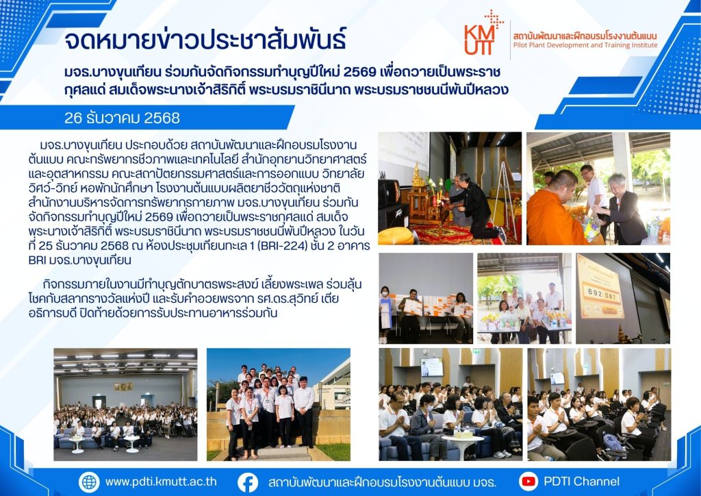 มจธ.บางขุนเทียน  ร่วมกันจัดกิจกรรมทำบุญปีใหม่ 2569 เพื่อถวายเป็นพระราชกุศลแด่ สมเด็จพระนางเจ้าสิริกิติ์ พระบรมราชินีนาถ พระบรมราชชนนีพันปีหลวง