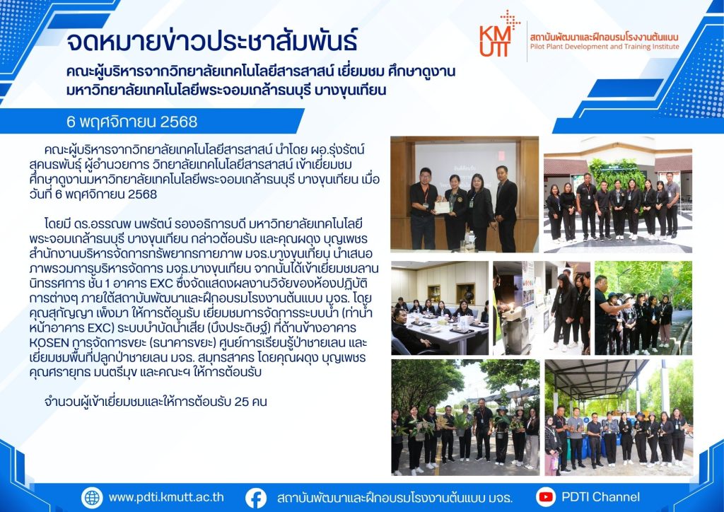 คณะผู้บริหารจากวิทยาลัยเทคโนโลยีสารสาสน์ เยี่ยมชม ศึกษาดูงานมหาวิทยาลัยเทคโนโลยีพระจอมเกล้าธนบุรี บางขุนเทียน