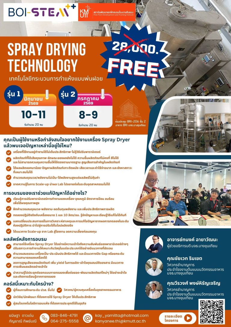 หลักสูตร เทคโนโลยีกระบวนการทำแห้งแบบพ่นฝอย (Spray drying technology)