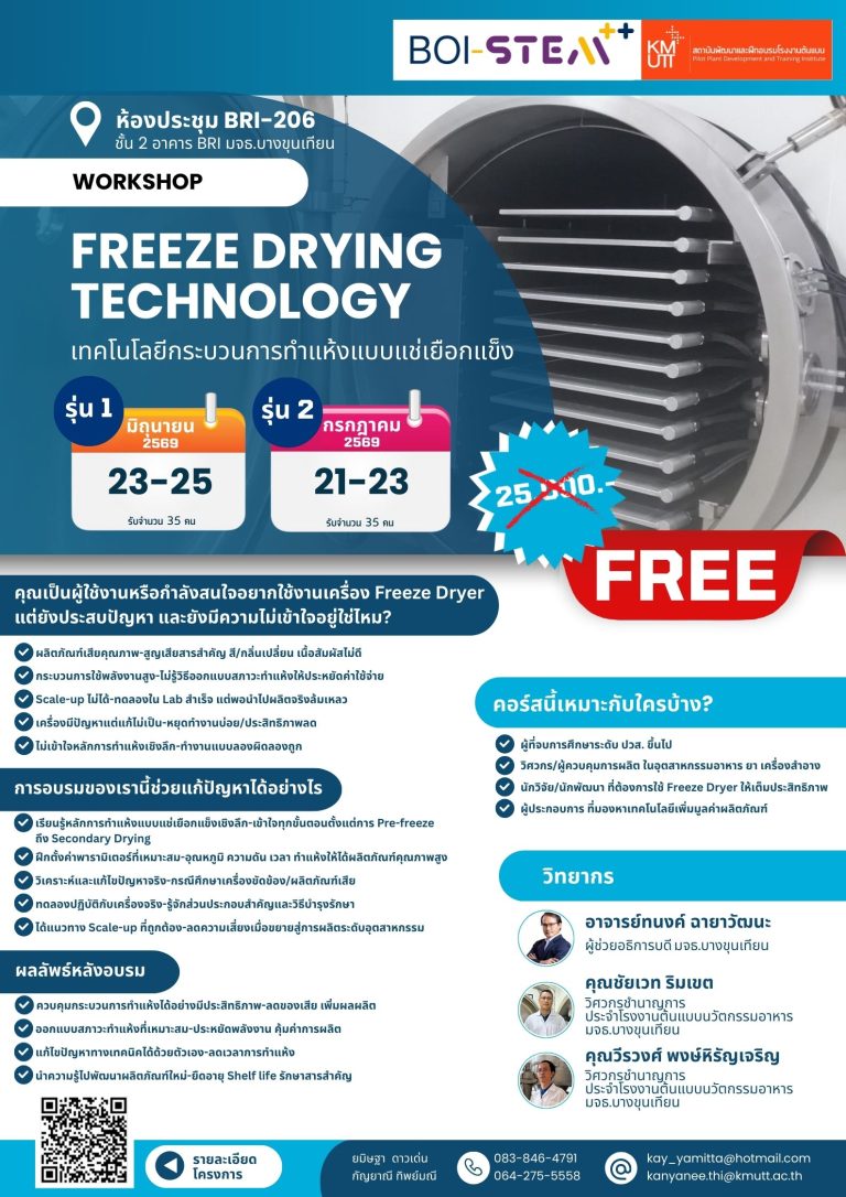 หลักสูตร “เทคโนโลยีกระบวนการทำแห้งแบบแช่เยือกแข็ง” (Freeze Drying Technology)