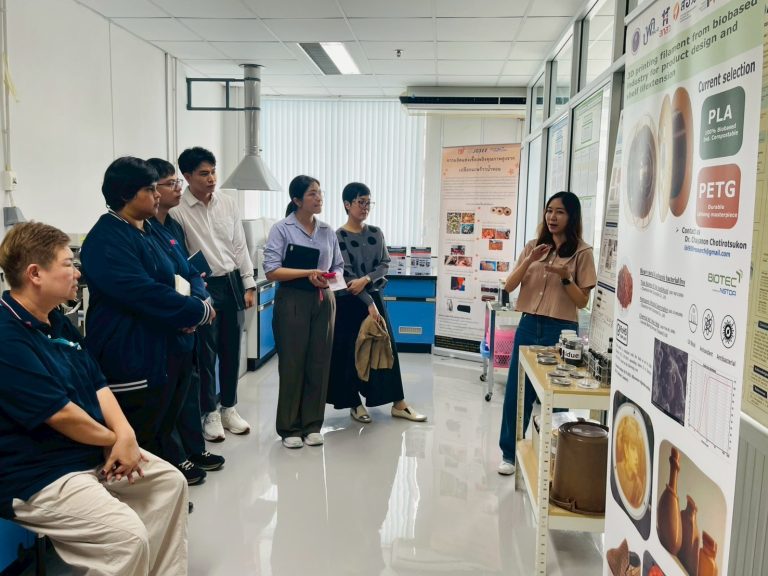 เมื่อวันที่ 29 กันยายน 2568 คณะผู้บริหารของบริษัท นีโอ แฟคทอรี จำกัด นำโดย คุณพิชชาพร พัฒนไพสิฐ ผู้อำนวยการฝ่ายทรัพยากรบุคคล คุณกัสมา ธรฤทธิ์ ผู้อำนวยการฝ่ายพัฒนาบรรจุภัณฑ์และพัฒนาองค์กรเพื่อความยั่งยืน ดร.วรรณี ฉินศิริกุล ที่ปรึกษาด้านเทคโนโลยีและนวัตกรรม เข้าเยี่ยมชม ศึกษาดูงานและหารือความร่วมมือในการทำวิจัย ร่วมกับห้องปฏิบัติการของสถาบันพัฒนาและฝึกอบรมโรงงานต้นแบบ (สรบ) โดยมี ผศ.ดร.บุณยพัต สุภานิช ผู้อำนวยการสถาบันพัฒนาและฝึกอบรมโรงงานต้นแบบ (สรบ) กล่าวต้อนรับ รศ.ดร.จักรกฤษณ์ เตชะอภัยคุณ รองผู้อำนวยการฝ่ายพัฒนางานวิจัย เทคโนโลยีและธุรกิจ นำเสนอภาพรวมของ สรบ. รศ.ดร.ชัยรัตน์ ตรีทรัพย์สุนทร หัวหน้าห้องปฏิบัติการ Remediation และ ดร.อานนท์ เศษสูงเนิน นำเสนอภาพรวมของ Lab Remediation ผศ.ดร.รัตติยา แววนุกูล นำเสนอภาพรวมของห้องปฏิบัติการเทคโนโลยีเอนไซม์ ศ.ดร.นวดล เหล่าศิริพจน์ ผู้อำนวยการบัณฑิตวิทยาลัยร่วมด้านพลังงานและสิ่งแวดล้อม นำเสนอภาพรวมงานวิจัย Integrative Biorefinery Laboratory (IBL) จากนั้นได้เข้าเยี่ยมชมห้องปฏิบัติการ Remediation โดย รศ.ดร.ชัยรัตน์ ตรีทรัพย์สุนทร ดร.อานนท์ เศษสูงเนิน และคณะฯ ให้การต้อนรับ ห้องปฏิบัติการเทคโนโลยีไขมัน โดย รศ.ดร.กรณ์กนก อายุสุข หัวหน้าห้องปฏิบัติการ LIPID และคณะฯ ให้การต้อนรับ ห้องปฏิบัติการเทคโนโลยีเอนไซม์ โดย รศ.ดร.ภัทรา ผาสอน ผศ.ดร.รัตติยา แววนุกูล ให้การต้อนรับ ห้องปฏิบัติการ Integrative Biorefinery Laboratory (IBL) โดย ศ.ดร.นวดล เหล่าศิริพจน์ และคณะฯ ให้การต้อนรับ หลังจากนั้นได้หารือความร่วมมือในการทำวิจัยร่วมกัน จำนวนผู้เข้าเยี่ยมชมและให้การต้อนรับ 35 คน