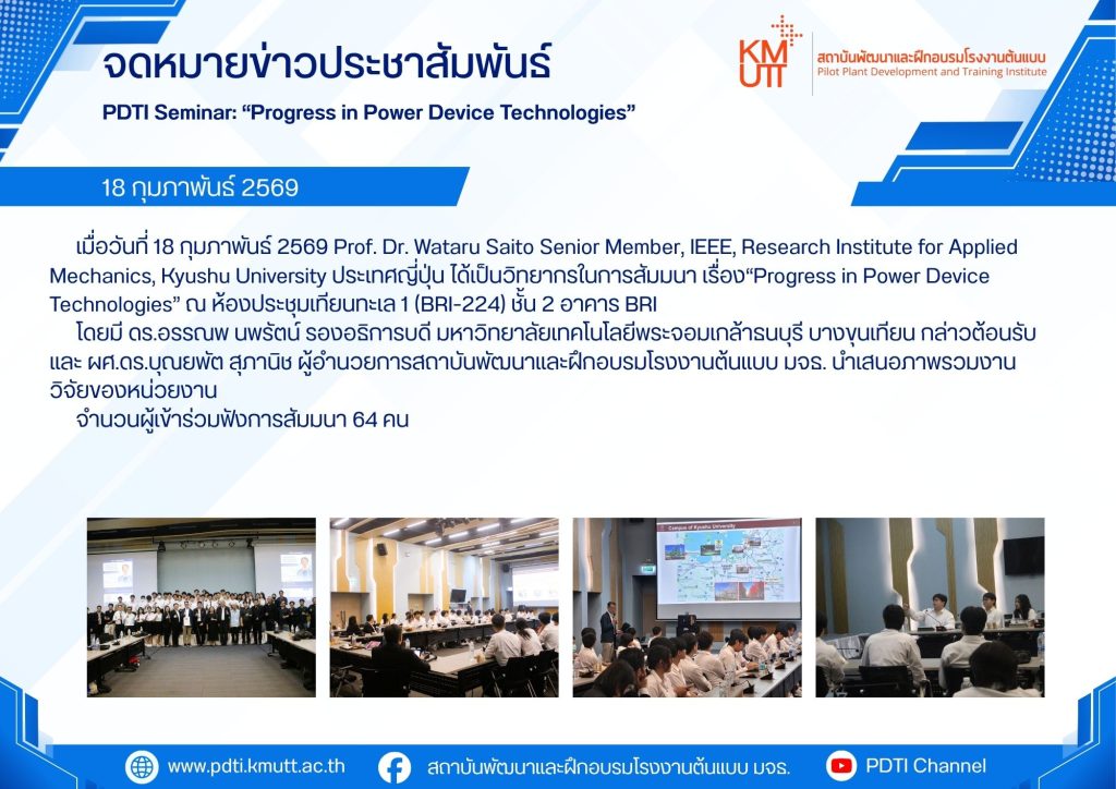 PDTI Seminar: “Progress in Power Device Technologies By Prof. Dr. Wataru Saito Senior Member, IEEE, Research Institute for Applied Mechanics, Kyushu University ประเทศญี่ปุ่น