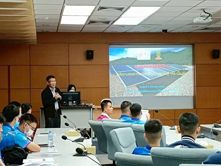 เมื่อวันพุธที่ 6 สิงหาคม 2568 ห้องปฏิบัติการวิจัยบูรณาการระบบพลังงานสะอาด (CESi) สถาบันพัฒนาและฝึกอบรมโรงงานต้นแบบ (สรบ.) มหาวิทยาลัยเทคโนโลยีพระจอมเกล้าธนบุรี (มจธ.) จัดงานจัดงานฝึกอบรมเชิงปฎิบัติการหลักสูตร“ พลังงานแสงอาทิตย์และปัญญาประดิษฐ์ (AI) เบื้องต้น” ณ ห้องประชุมสัตตบงกช อาคารวิจัยและพัฒนาโรงงานต้นแบบ มจธ. บางขุนเทียน โดยมีวัตถุประสงค์เพื่อฝึกอบรมเชิงปฎิบัติการให้กับนักเรียนระดับมัธยมศึกษา โรงเรียนเตรีมอุดมศึกษาน้อมเกล้า กรุงเทพมหานคร ในการนี้